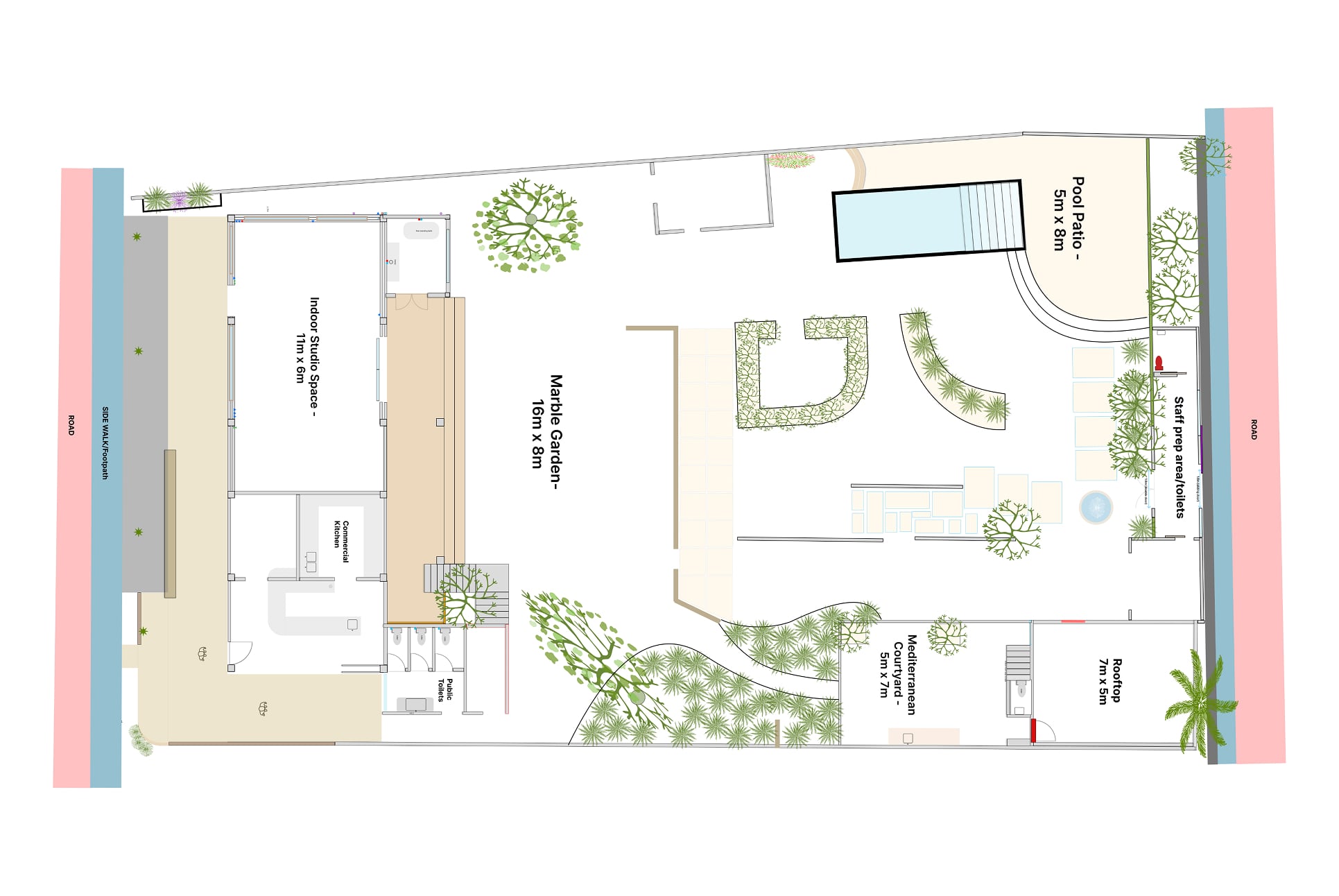 All three outdoor spaces, almost 1000m2 with endless flexibility